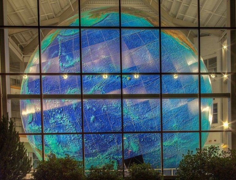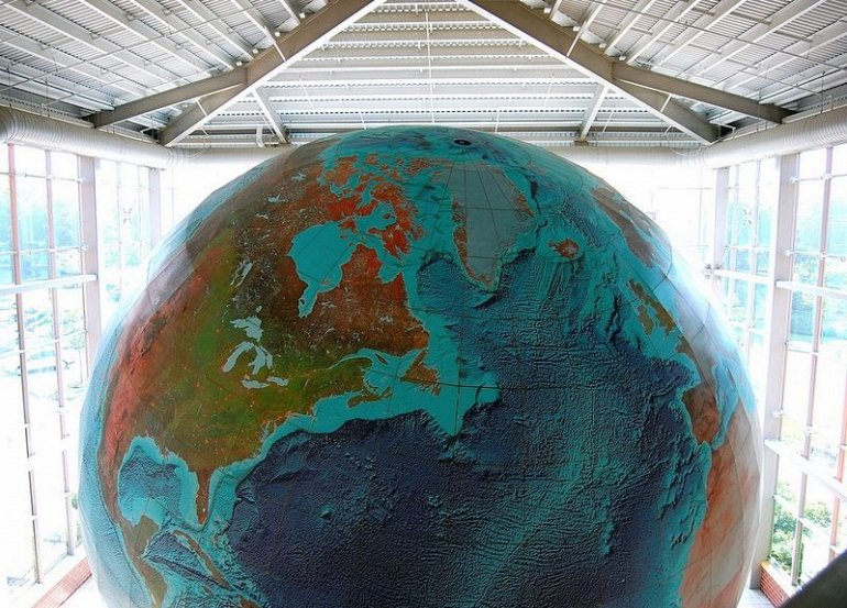 В офисе компании DeLorme, специализирующейся на выпуске карт, уютно расположился Эрта – самый большой в мире глобус. Вращающуюся модель нашей планеты можно увидеть в городке Ярмут (штат Мэн, США), что расположен в паре десятков минут езды от Портленда. Эрта имеет вес в две с половиной тонны при диаметре 12.5 метров. Если кто-то захочет увидеть северное полушарие на этом гиганте, ему придется подняться на уровень третьего этажа.