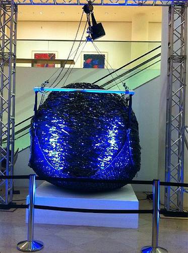 Размеры творения действительно поражают, особенно если учесть тот факт, что материалов для его изготовления послужила обычная магнитная лента, которая использовалась в кассетах для видеомагнитофонов и музыкальных проигрывателей. Предварительный проект разрабатывали инженеры и студенты, которые на протяжении трех недель производили необходимые расчеты, чтобы в дальнейшем добиться желаемых результатов. Только на первый взгляд, кажется, что создать шар из магнитной ленты очень просто. На самом деле, если допустить малейшую ошибку, он рассыпается и все приходится начинать заново.