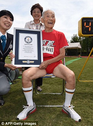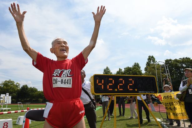 Хидекичи Миядзаки (Hidekichi Miyazaki), 105 летний японец, пробежал 100 метров за 42,22 секунд. Это на 32.64 секунд медленнее, чем показатель ямайского легкоатлета Усэйна Болта, однако, для его возраста это более чем впечатляющий результат.