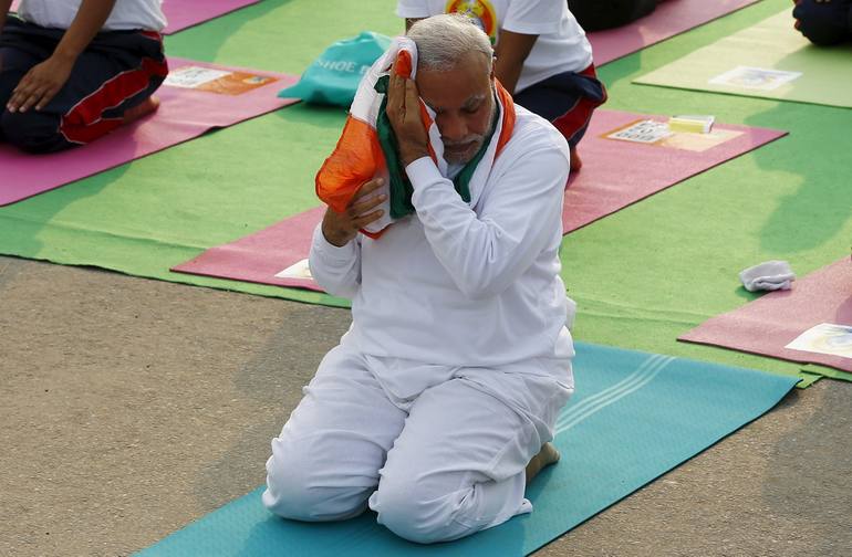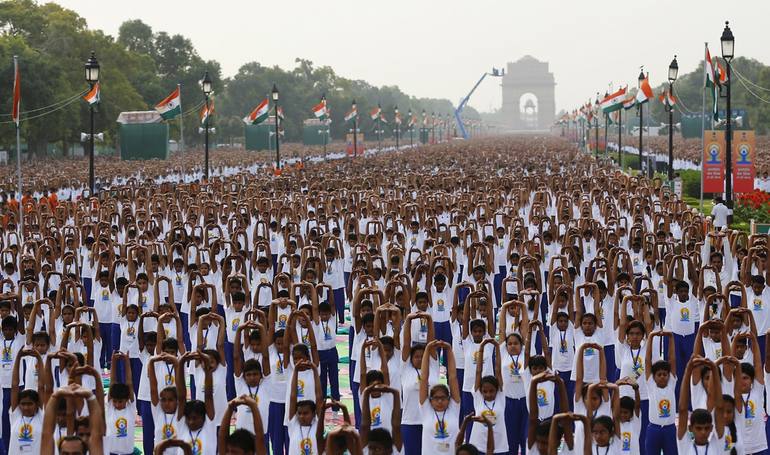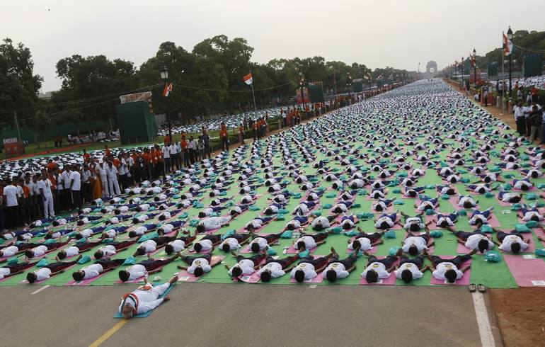 Премьер-министр Индии Нарендра Моди лично провел занятия йогой для нескольких десятков тысяч людей, собравшихся по этому случаю на одной из центральных площадей города Нью-Дели. Эта акция была приурочена к международному Дню йоги.